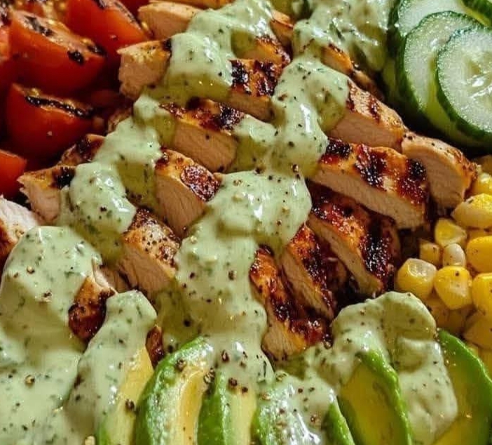 Colorful, nourishing, and bursting with textures — crisp greens, juicy grilled chicken, and creamy avocado — this bowl is a wholesome feast for both the eyes and appetite.