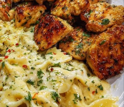 Creamy, light, and full of lemon-garlic brightness, this dish brings together velvety pasta and tender chicken in a sauce that is both refreshing and luxurious. Every forkful is perfectly balanced — rich yet zesty, comforting yet lively.