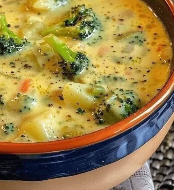 This soup is a creamy delight — tender potatoes and soft broccoli meld into a luscious, cheesy broth that brings instant comfort. Each spoonful feels homemade, heartwarming, and deeply satisfying.
