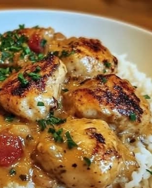 This dish features juicy, well-seasoned chicken nestled into tender rice, all coated in a savory, lightly thickened sauce. Every bite is comforting, balanced, and satisfying without being heavy.