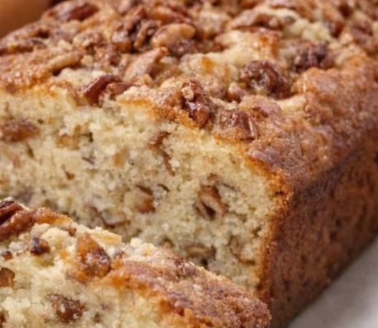 This bread bakes up soft and moist with a golden top crowned by a sweet, nutty pecan crust. Each bite offers a balance of fluffy cake texture and crunchy caramelized pecans, making it both comforting and indulgent.