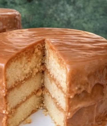 The cake layers are tender, buttery, and softly golden, designed to support the bold sweetness of caramel icing. Each bite delivers a balance of fluffy crumb and deep, cooked-sugar richness that defines classic Southern desserts.