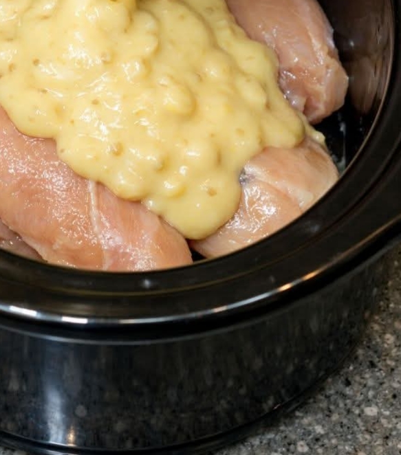 This dish features tender slow-cooked chicken coated in a smooth and creamy sauce. The combination of simple seasonings and creamy ingredients produces a comforting flavor that pairs well with many side dishes.