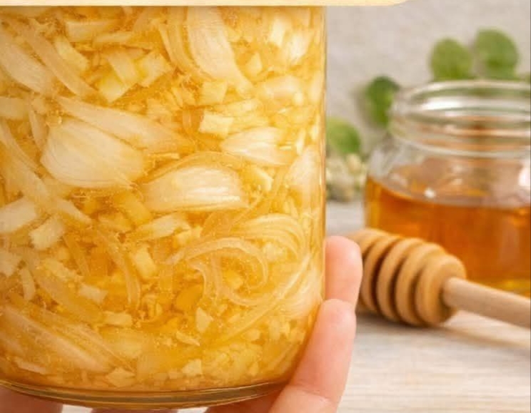 This natural mixture of ginger, onion, garlic, lemon juice, and honey is a traditional home remedy often used to support immunity and overall wellness. With its combination of pungent, sweet, and citrusy flavors, it is valued for soothing the throat, aiding digestion, and providing a gentle daily health boost.