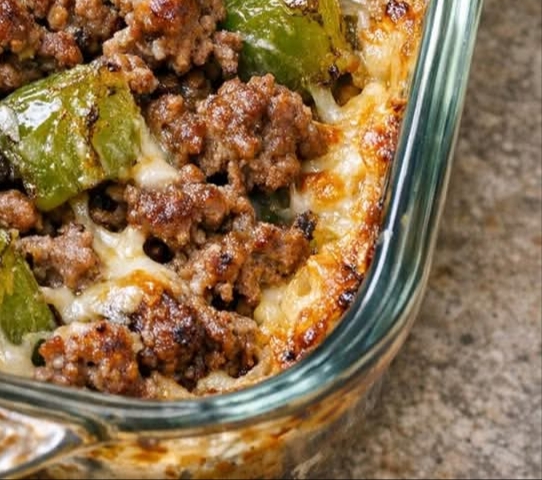 This dish delivers a perfect balance of savory beef, slightly sweet peppers, and rich, gooey cheese. The top layer turns golden and bubbly, while the inside stays juicy and flavorful—making every bite deeply satisfying.