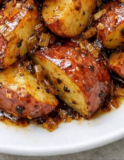 These potatoes come out ultra-tender on the inside with slightly caramelized edges, coated in a rich, savory onion-butter glaze. Each bite is buttery, slightly salty, and packed with deep onion flavor—pure comfort in every forkful.